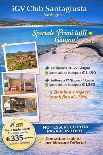 Vivi l’estate in anticipo con uno speciale “Primi Tuffi di Giugno” in una delle zone più belle della Sardegna.